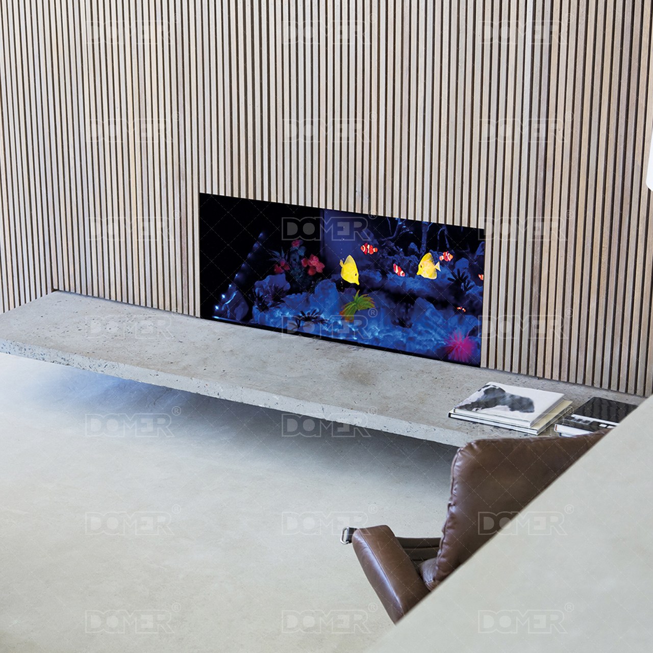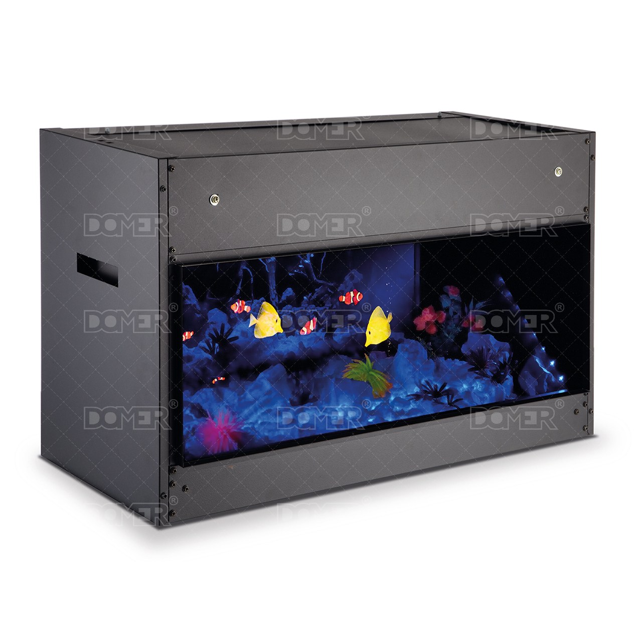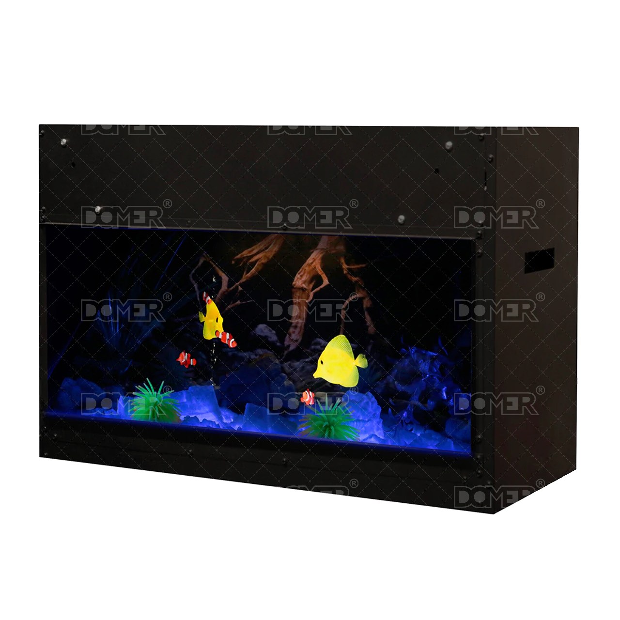 Aquarium to nowoczesne akwarium elektryczne przeznaczone do zabudowy. Zastosowana nowoczesna technologia Opti-sprawia, że wyświetlane na wysokiej rozdzielczości ekranie ryby tworzą trójwymiarową iluzję. Efekt jest na tyle realistyczny, że odróżnienie od żywego akwarium jest praktycznie niemożliwe. Bezobsługowa praca pozwala zaoszczędzić czas oraz pieniądze, które musimy przeznaczyć na karmienie ryb oraz czyszczenie zbiornika w standardowym akwarium. Urządzenie zostało wyposażone w regulacje jasności wyświetlanego obrazu, emulator dźwięku z regulacją głośności, Przewód zasilający zakończony wtyczką oraz pilot zdalnego sterowania. Idealnie nadaje się do zastosowań komercyjnych takich jak biura, gabinety medyczne czy też restauracje zwiększając atrakcyjność obiektów i zapewniając unikalny wystrój.