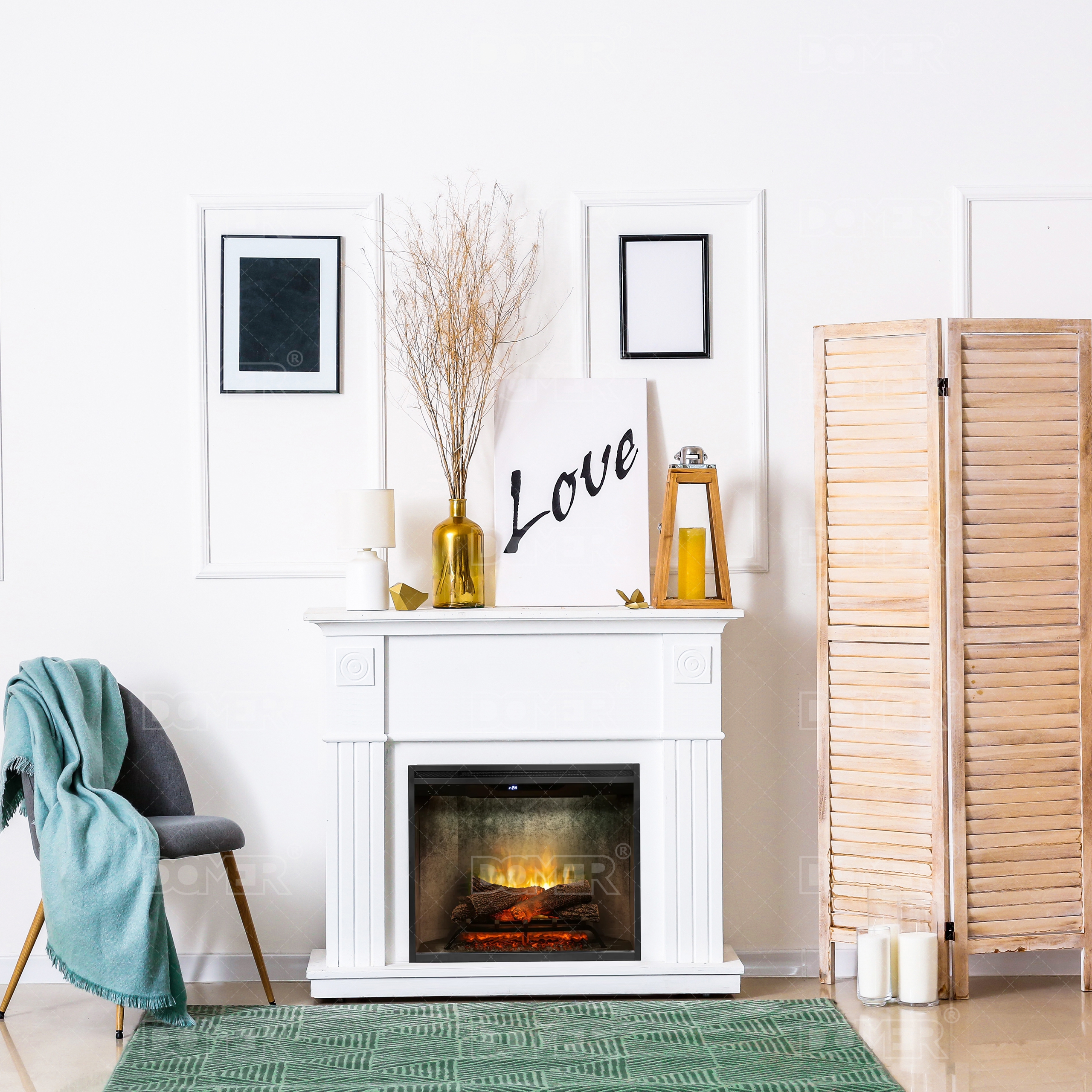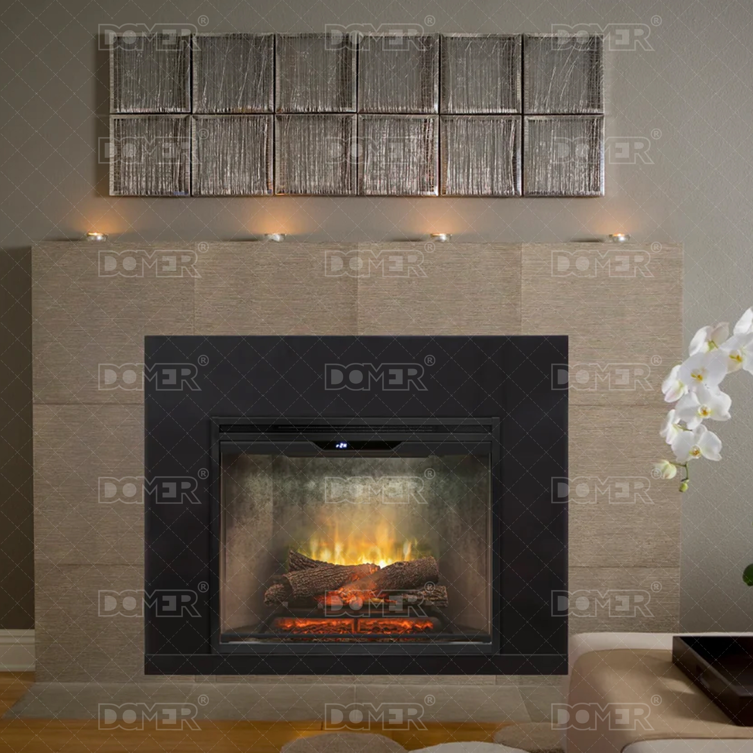Wkład kominkowy do zabudowy – zaproszenie do zaprojektowania wymarzonego kominka, a tym samym do zaaranżowania wnętrza według własnego uznania. Jego zaletą jest możliwość zabudowania we wnęce ściennej, meblowej, bądź dowolnego rodzaju obudowie. Model ten wyposażony jest w termowentylator o mocy 2 kW, termostat i pilot zdalnego sterowania. Kominek z efektem płomienia Optiflame Revillusion ® oraz paleniskiem płonące polana, posiada także antyrefleksyjny panel podświetlany diodami LED, wykonany w technologii Mirage™. Wkład tworzy realistyczny obraz ognia wraz z dogasającym żarem. Jasność płomieni, ich barwę, a także intensywności migotania można regulować dostosowując do własnych potrzeb. Technologia ThruView™ dodatkowo kreuje głębię iluzji ognia. Technologia LED wydatnie obniża koszt użytkowania efektu płomienia – koszt pracy efektu świetlnego wynosi ok. 1 gr/1 h!